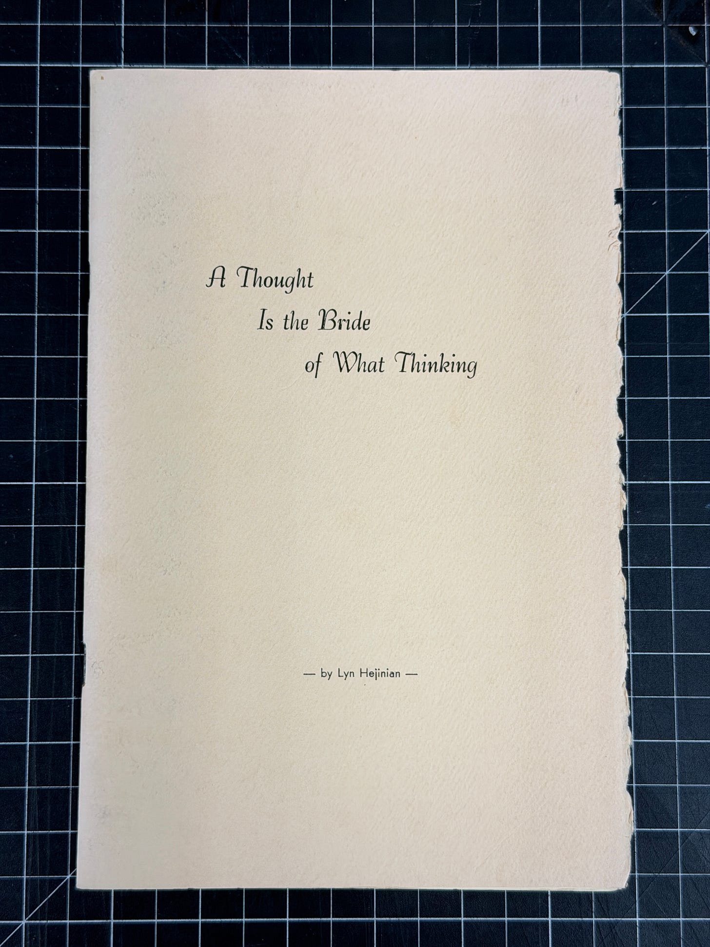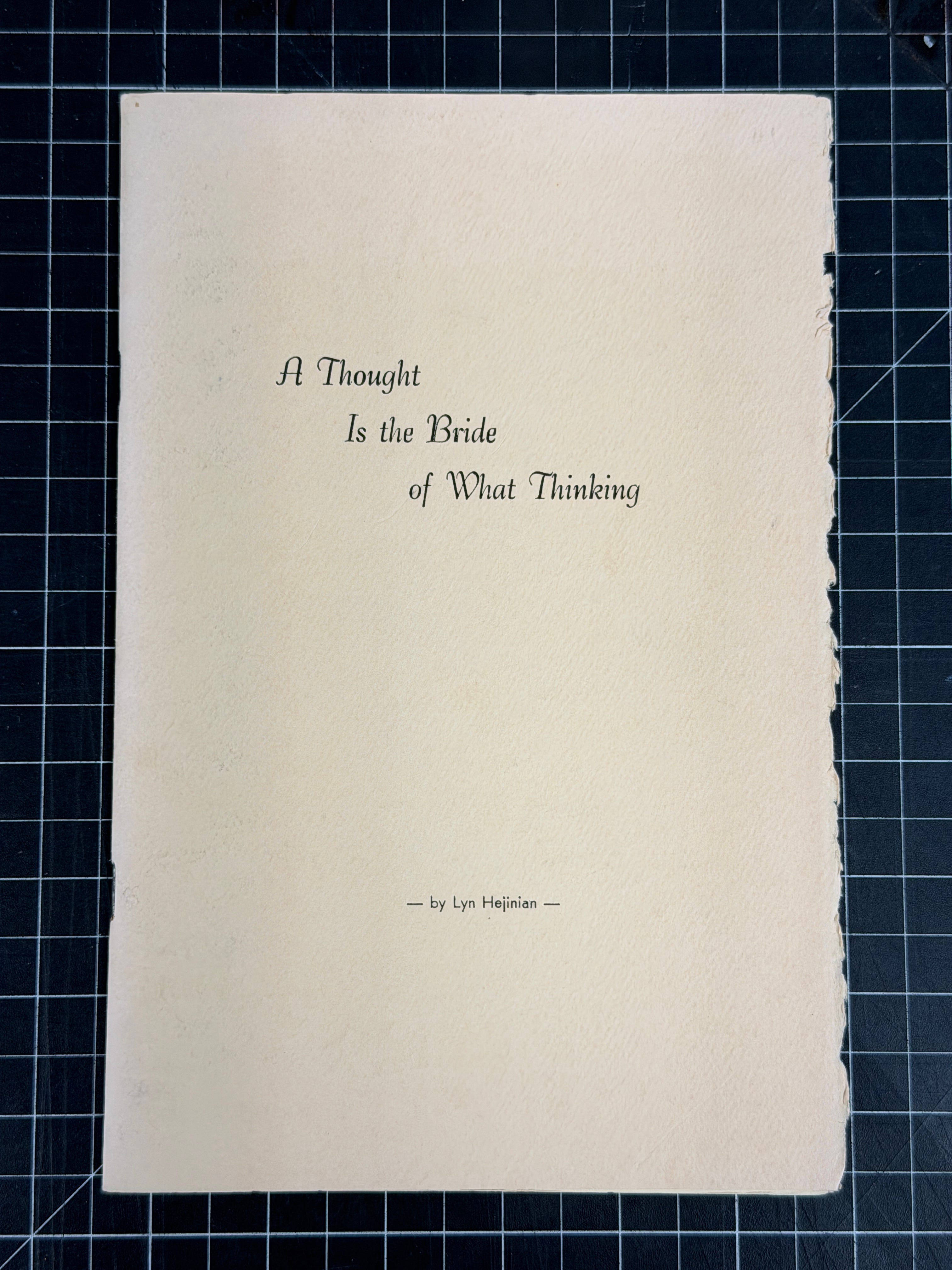 On Tuesday, I read Lyn Hejinian’s A Thought is the Bride of What Thinking, her second book and the first to be published by her Tuumba Press. Moments of connection happen all the time, such as in this paragraph, that seemed to connect my return to the guitar, to my reading of Sally Mann this week, and to living: